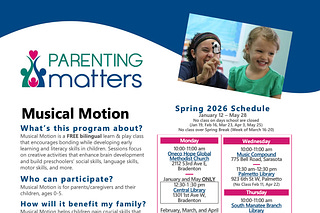 Families across Manatee and Sarasota counties will soon have new opportunities to connect, learn, and play together as the Musical Motion program…