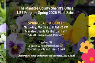 The Manatee County Sheriff’s Office is welcoming the community to its 2026 Spring Plant Sale kickoff on Saturday, March 28, offering a wide selection of…