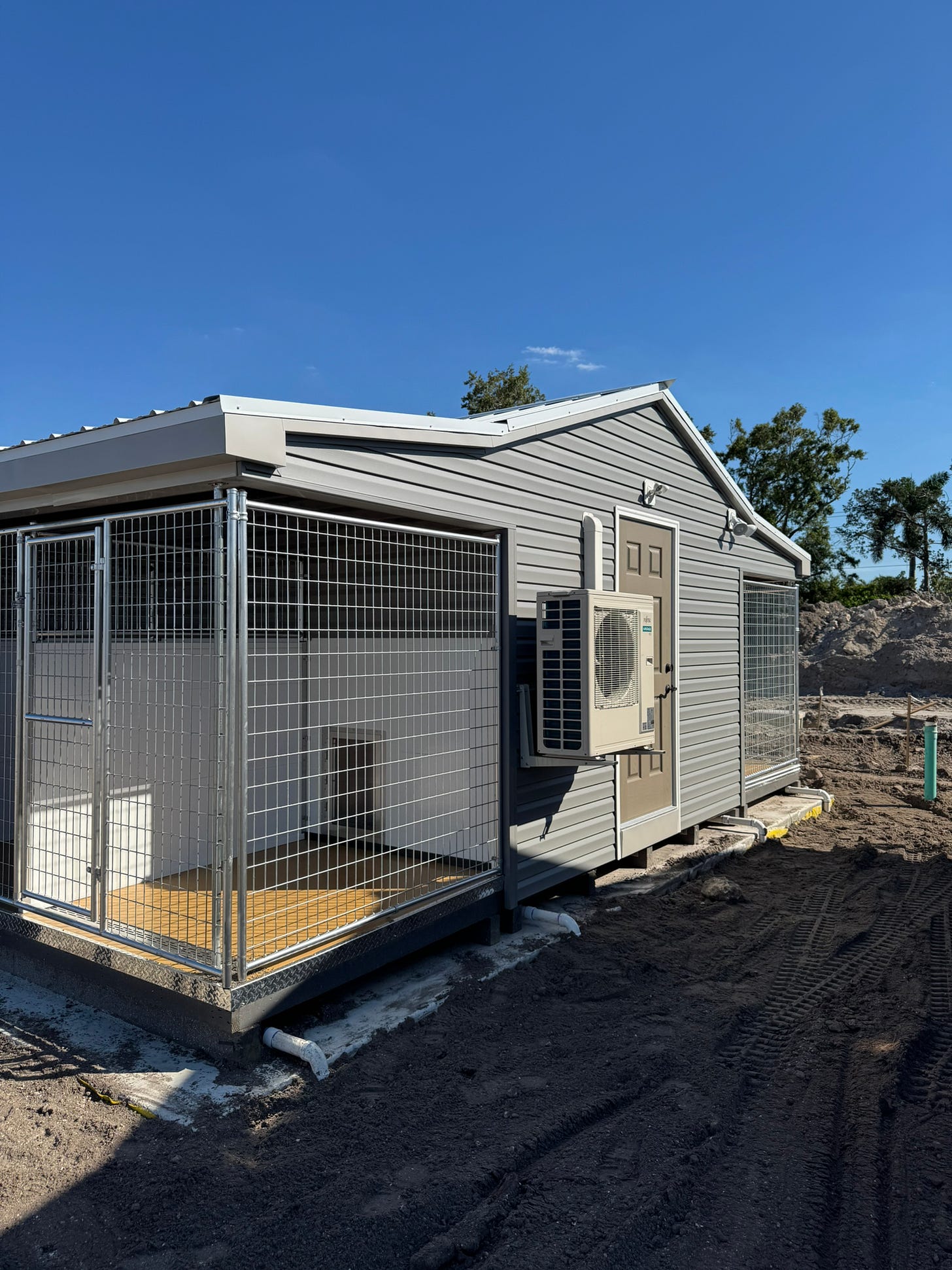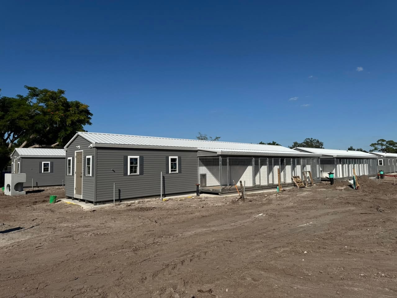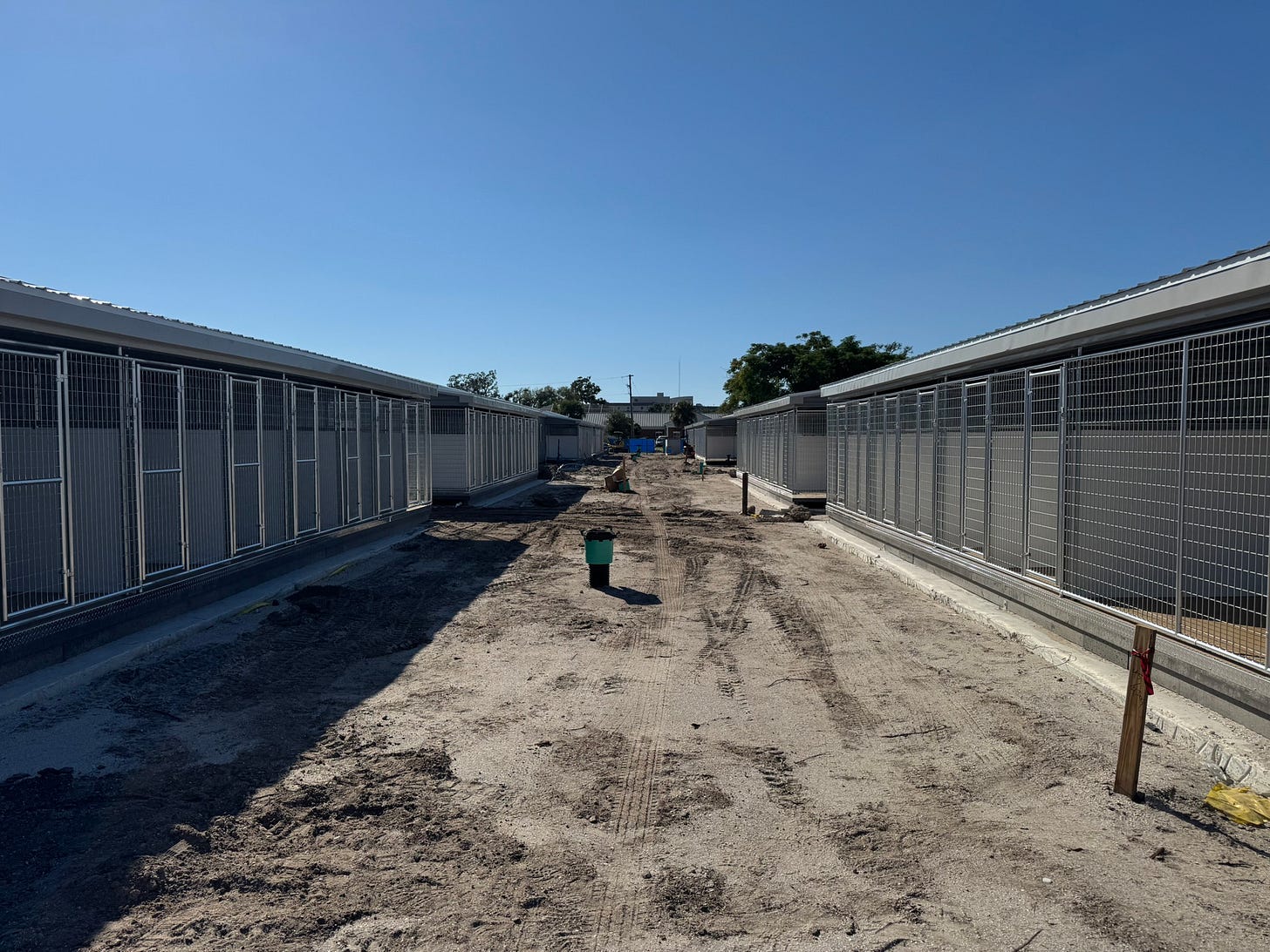 All eight kennels have now been delivered, anchored, and connected to plumbing, completing a significant portion of the early construction phase. Crews are currently making final adjustments before advancing to the next stage of development.