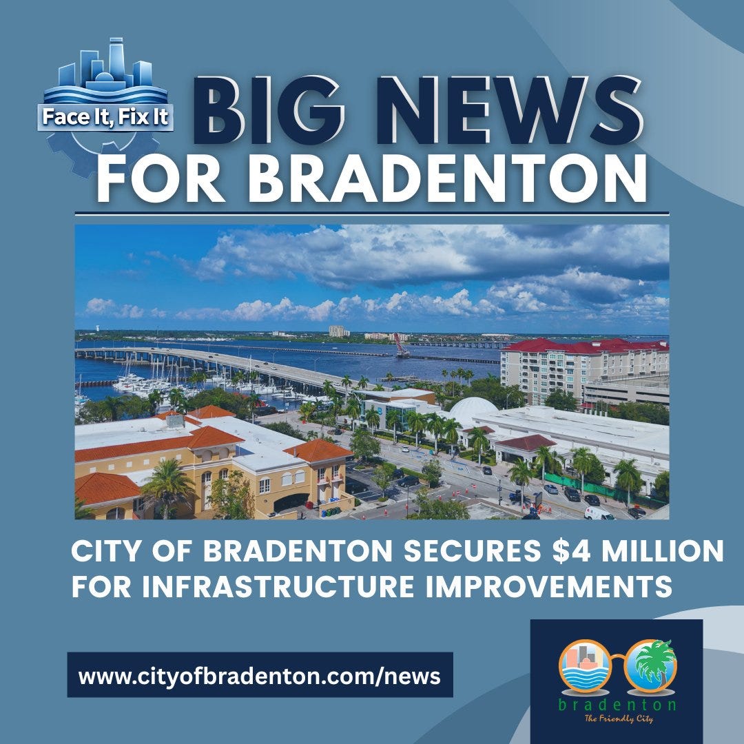 The City of Bradenton has secured an additional $4 million in federal Community Project Funding to support key infrastructure and public safety projects aimed at improving the quality of life across the community.