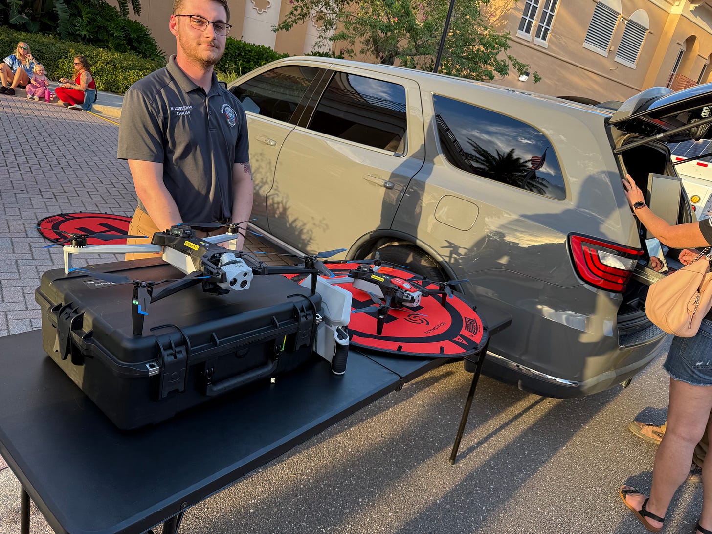Fire trucks, police vehicles, and emergency response units lined the area as families met local officers and first responders. The event, supported by community sponsors including Sam’s Club, Kona Ice, The Shop, Travelin’ Tom’s Coffee Truck, and the City of Bradenton, offered a relaxed environment for residents to learn more about local public safety efforts.