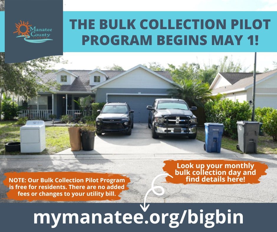 Manatee County is set to roll out its new Bulk Collection Pilot Program beginning May 1, offering expanded curbside pickup options for residents in unincorporated areas.