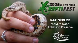 Families and nature-lovers can explore Florida wildlife at ReptiFest, held November 22 from 9 a.m. to noon at Robinson Preserve. The event will showcase live reptiles and provide guidance on their importance to local ecosystems. Registration is encouraged but not required.