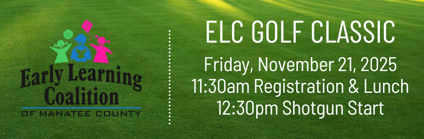 Outside the library, several large community events are planned across the county. The Early Learning Coalition of Manatee County will hold its 14th Annual Golf Classic on November 21 at 11:30 a.m., with lunch and registration preceding a 12:30 p.m. shotgun start.