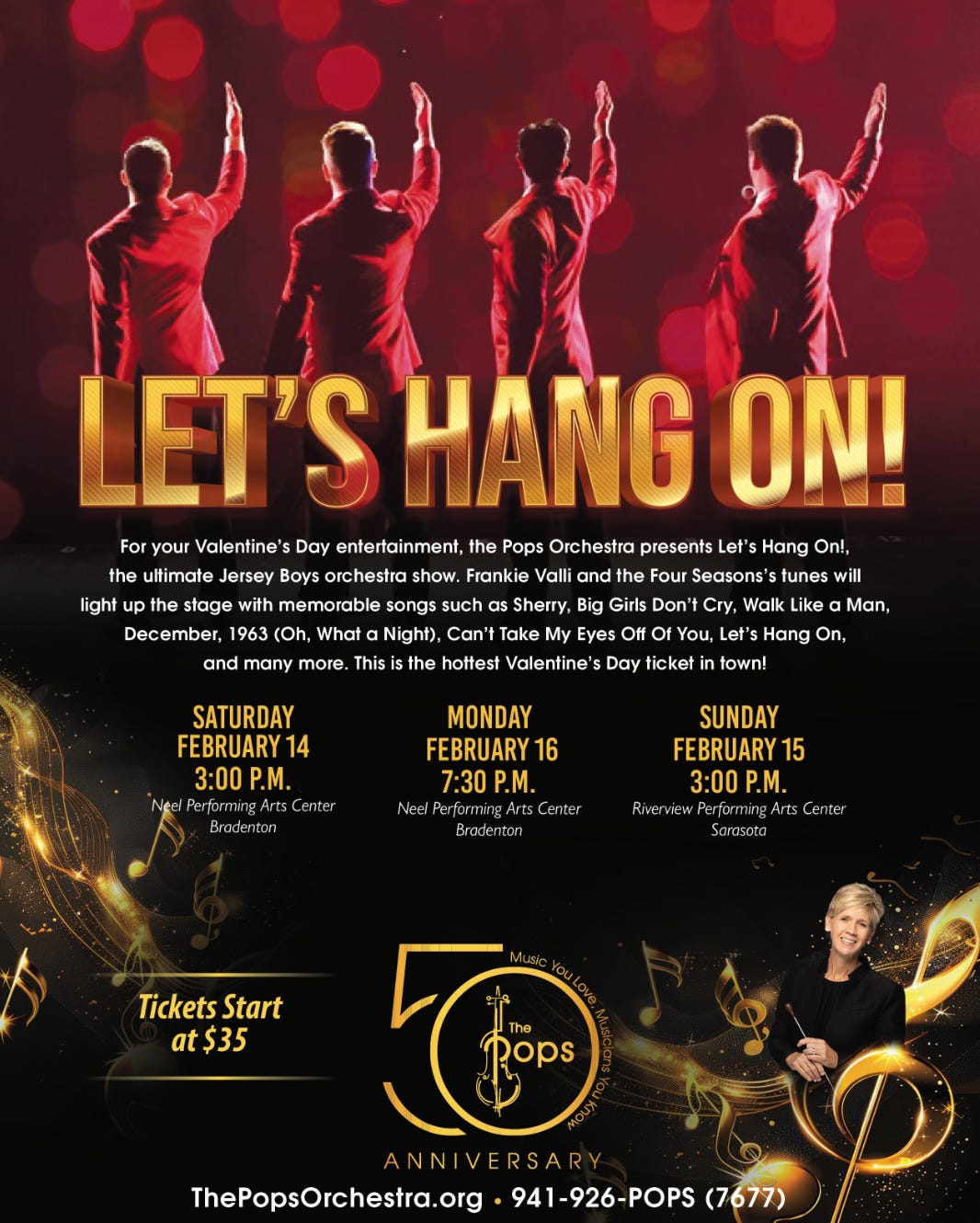 This Valentine’s Day weekend, audiences are invited to fall in love all over again with the timeless sound of Frankie Valli and the Four Seasons when Let’s Hang On! takes the stage with the Pops Orchestra of Bradenton & Sarasota for three unforgettable performances across the region.