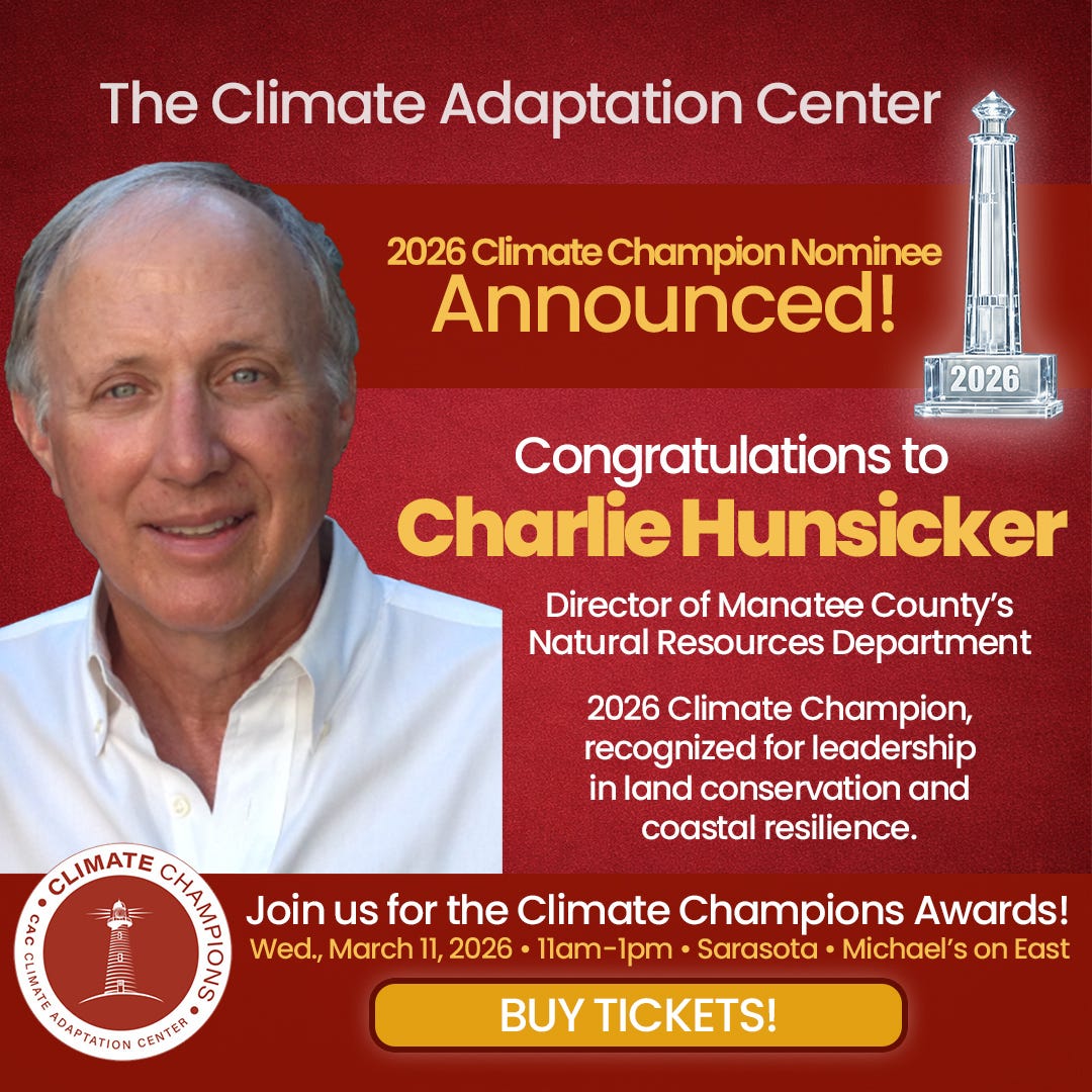 Charlie Hunsicker, Director of Natural Resources, has been nominated as the 2026 Climate Champion by the Climate Adaptation Center, recognizing his outstanding leadership in conservation and coastline restoration efforts across Florida.