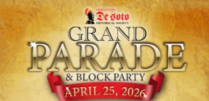 April 25 will also bring one of the area’s most anticipated traditions, the Hernando De Soto Grand Parade and Block Party in downtown Bradenton. The event begins with a block party at 2:00 p.m., followed by the parade at 6:30 p.m., featuring floats, music, vendors, and family-friendly activities.