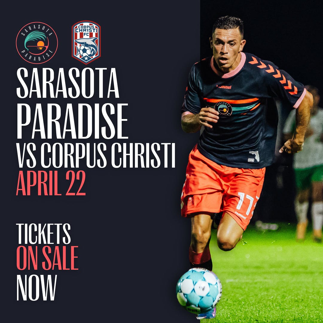 Sports fans can catch Sarasota Paradise as they take on Corpus Christi FC on April 22, offering local soccer supporters a midweek opportunity to enjoy competitive play.