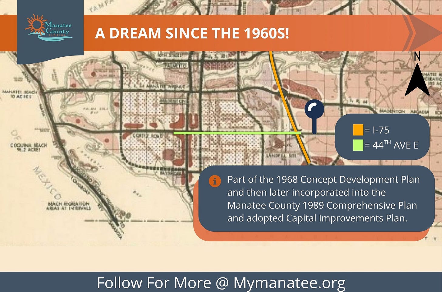 First conceptualized as part of the 1968 Concept Development Plan and later included in Manatee County's 1989 Comprehensive Plan and Capital Improvements Plan, the 44th Avenue East corridor has been in the making for over half a century. It was designed to meet the growing transportation needs of a rapidly expanding population while providing much-needed east-west connectivity.