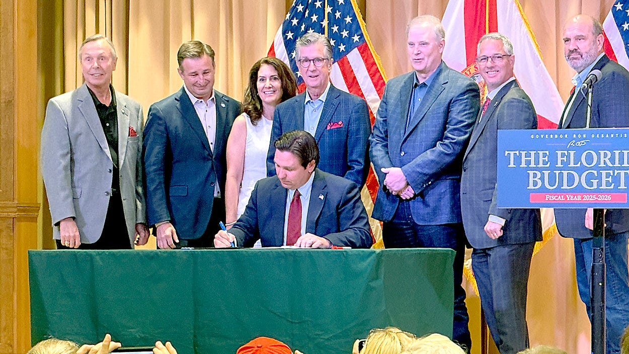 Governor Ron DeSantis signed Florida’s new $117 billion budget at a Monday morning ceremony in Wildwood, implementing cuts and trimming roughly half a billion dollars via line-item vetoes. The budget—which is down from last year’s $118.6 billion—takes effect Tuesday at midnight.