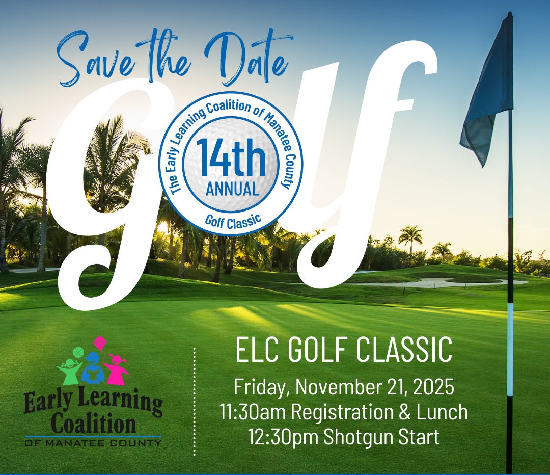 The Early Learning Coalition of Manatee County will host the 14th Annual Paul Sharff Memorial Golf Classic on Friday, November 21, 2025, at the IMG Academy Golf Club. The event, presented by State Senator Jim Boyd and State Representative Will Robinson, brings the community together to support early childhood education programs.