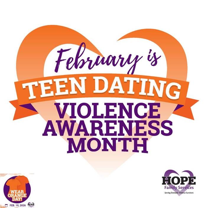 Throughout February, organizations such as HOPE Family Services are sharing resources, educational messages, and engagement opportunities to support teens and strengthen the community. Residents are encouraged to follow, share, like, and engage with awareness posts to help spread the message and reinforce the importance of healthy relationships for young people.