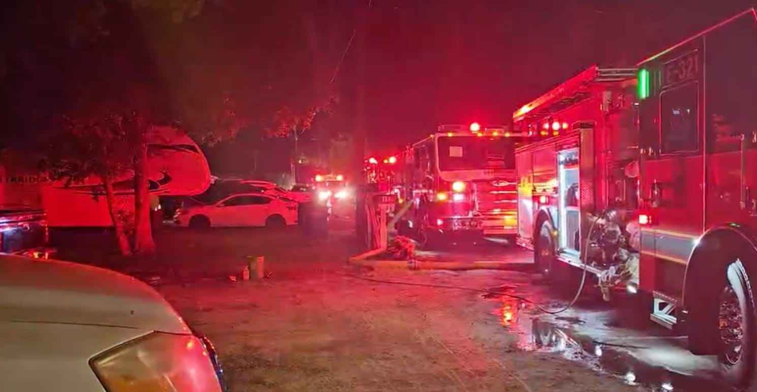 Crews responded to the single-family residence in the 100 block of 28th Avenue Drive East around 7:10 p.m. Firefighters encountered heavy smoke and flames coming from a bedroom and discovered several people inside the structure.