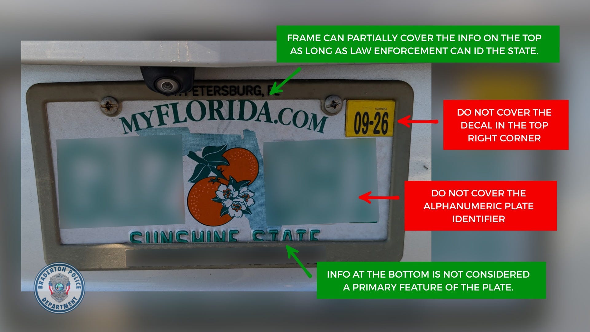 The Florida Department of Highway Safety and Motor Vehicles has issued clarification on state law regarding license plate frames and what constitutes an obstruction under Florida law. The guidance is intended to help motorists understand which plate features must remain visible to avoid citations.