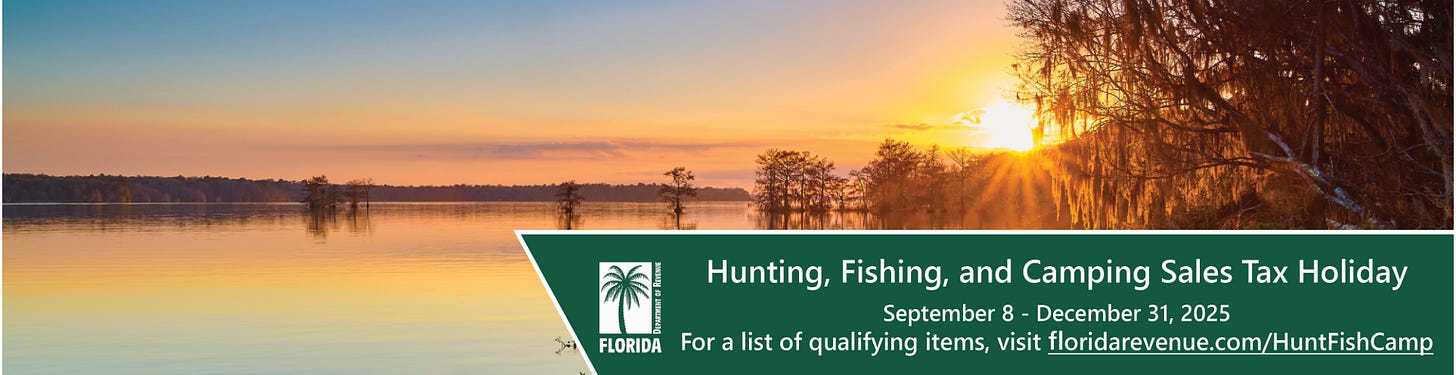 Florida shoppers can now take advantage of a new sales tax holiday that began September 8 and will continue through December 31, 2025. The statewide tax exemption applies to a wide range of outdoor, hunting, fishing, and camping equipment, making it easier for residents to prepare for fall and winter recreation.