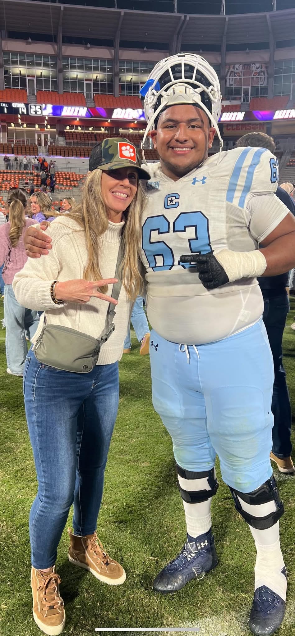 Despite her unwavering support for the Clemson Tigers, Mrs. Byer couldn't help but cheer enthusiastically for Rodriguez-Pena, who dons jersey number 63 for The Citadel. Her pride was evident as she watched her former student compete at the collegiate level, marking a significant milestone in both their lives.