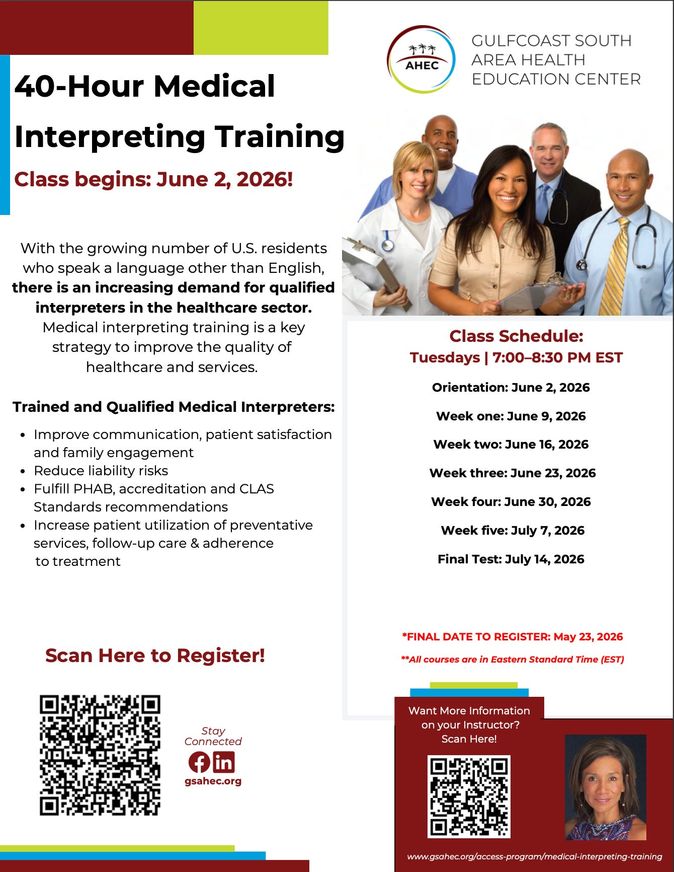 Gulfcoast South Area Health Education Center is now accepting registrations for its upcoming 40-hour Medical Interpreting Training course, offering bilingual individuals an opportunity to advance their careers in healthcare.