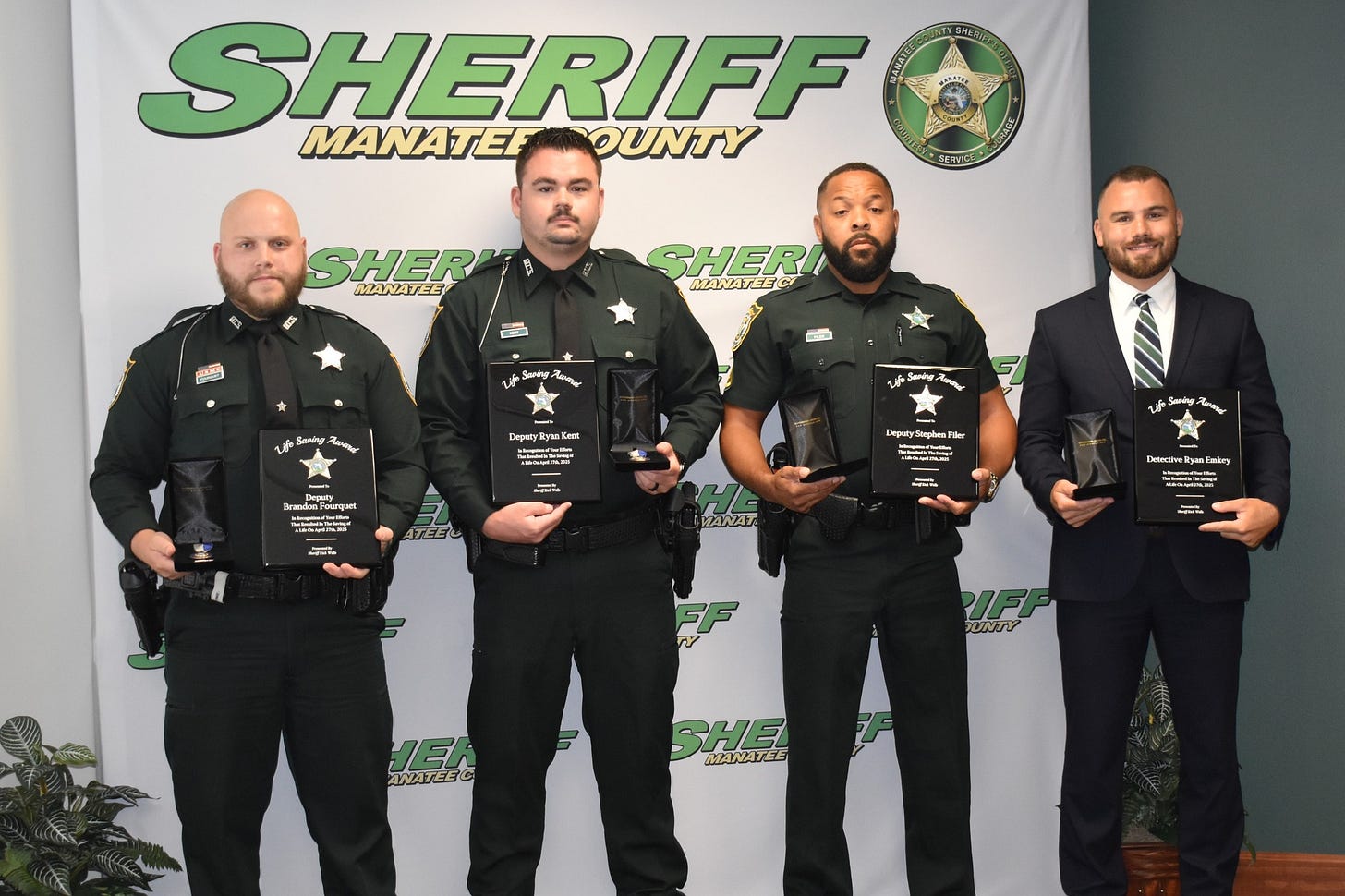 Four members of the Manatee County Sheriff’s Office have received the agency’s prestigious Lifesaving Award for their swift, coordinated response that helped save the life of a teenage gunshot victim earlier this year.