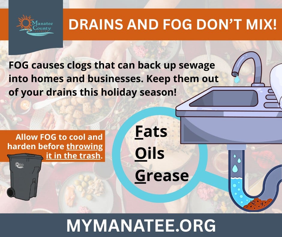 As holiday cooking ramps up, Manatee County officials are reminding residents to properly dispose of fats, oils, and grease (FOG) to help prevent sewer backups and costly plumbing problems.