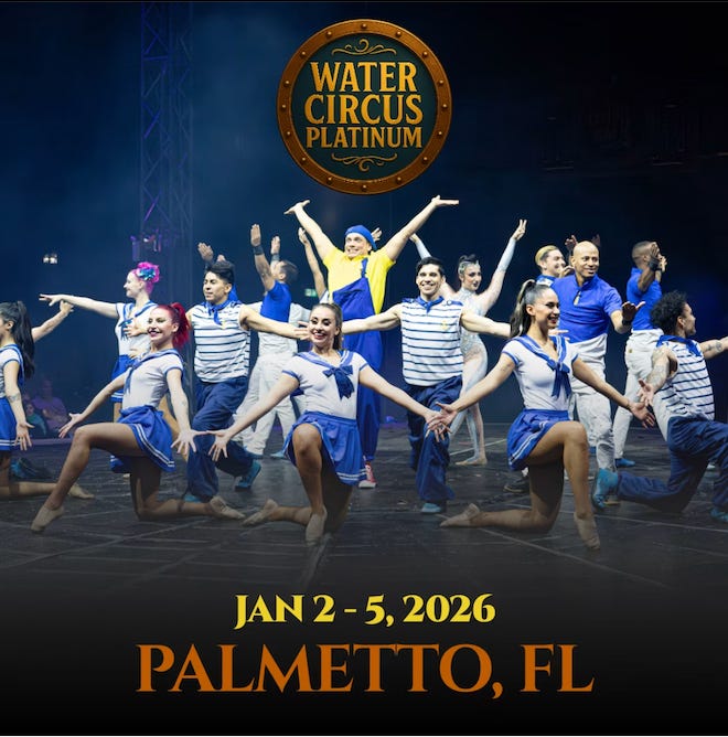 Following that engagement, Cirque Italia’s Water Circus Platinum will take place Jan. 2 through Jan. 5, 2026, at the same location. The family-oriented production features a climate-controlled tent and a large water stage, with performances centered on acrobatics, choreography, and theatrical water effects. The show is promoted as suitable for all ages, highlighting a mix of thrills, humor, and visual spectacle.