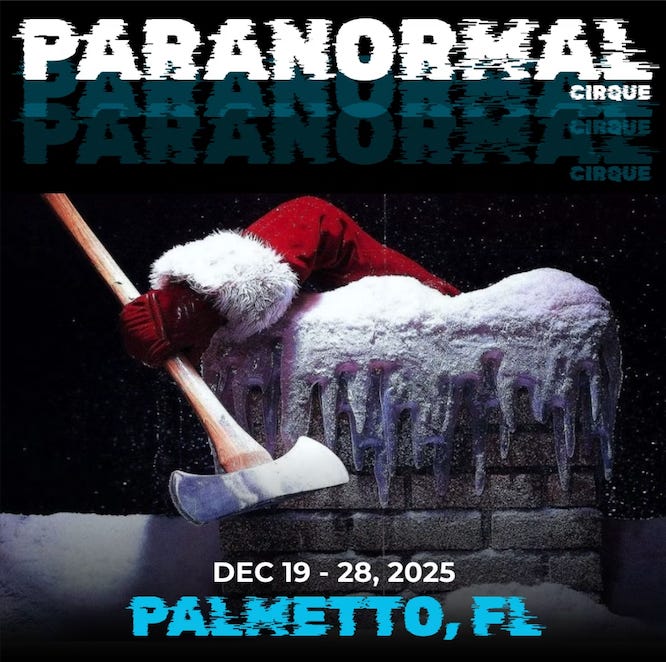 Paranormal Cirque II runs from Dec. 19 through Dec. 28, 2025, offering a horror-themed performance blending circus-style acts with dark, seasonal imagery. The production is marketed as an adults-only experience, with organizers noting that it contains intense scares, strong language, strobe lighting, sudden visual effects, and disturbing holiday themes. Admission is restricted to guests 13 and older, with those ages 13 to 17 required to attend with an adult who has valid identification. Accessible seating is available through advance arrangements with the box office.