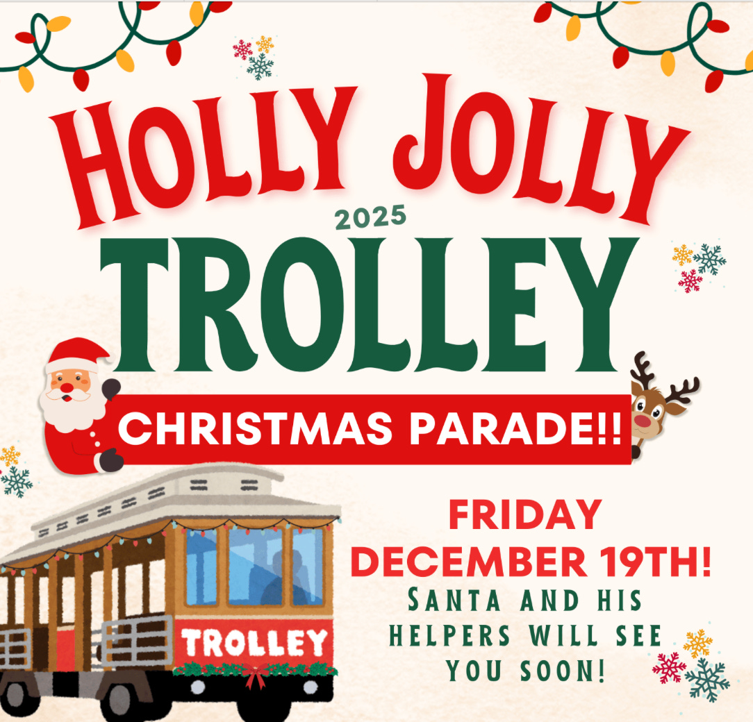 Although the visits themselves are private events, the trolleys will be on public roads all day, and community members are encouraged to keep an eye out. If you see the Holly Jolly Trolleys, you are invited to wave, take pictures, and share them on social media using the hashtag #HJTrolley.