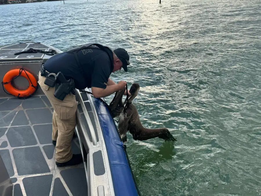 Officials said the rescue highlights the department’s commitment to protecting not only residents and visitors, but also the area’s native wildlife. The quick response by marine officers helped ensure the pelican could be safely removed from harm and taken to a facility equipped to care for injured animals.