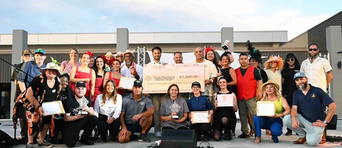Event organizers proudly presented Florida Restaurant & Lodging Association (FRLA) Suncoast Chapter Board Members Wes Santos and Gil Reyes with a $7,500 donation to benefit the chapter’s education initiatives.