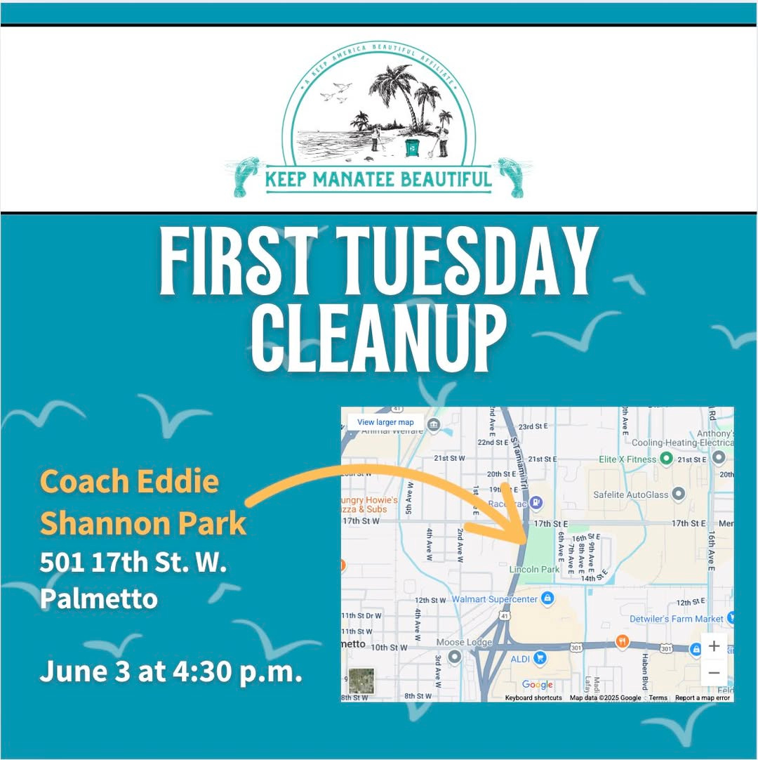 PALMETTO – Volunteers and community members are invited to participate in the next "First Tuesday Cleanup," hosted by Keep Manatee Beautiful. The June event will take place at Coach Eddie Shannon Park, located at 501 17th Street West in Palmetto.