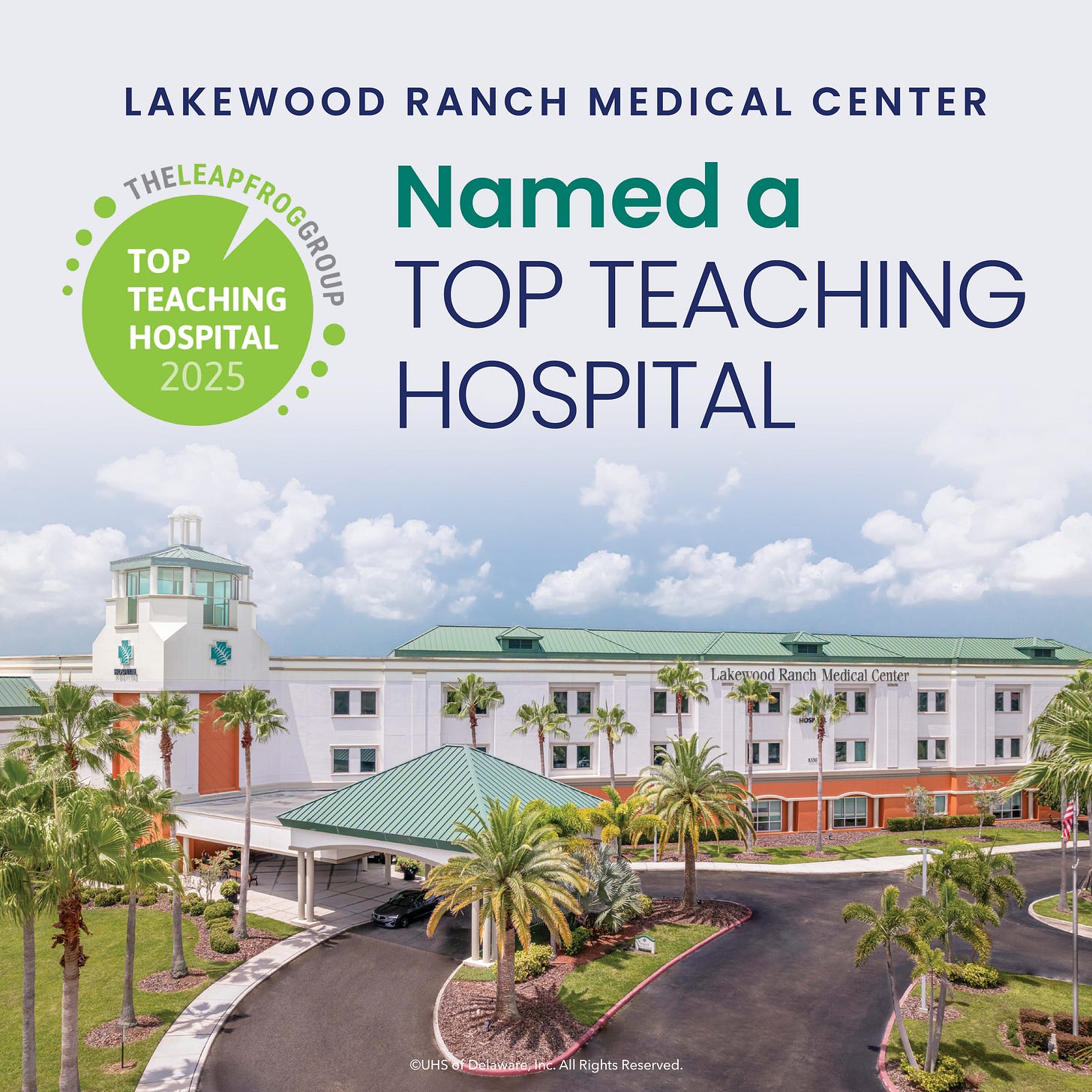 Highlighting its nationally recognized achievements in patient safety and quality, Lakewood Ranch Medical Center (LWRMC) was named a Top Teaching Hospital by The Leapfrog Group. This award is one of the most competitive honors hospitals and surgery centers in the United States can receive for their commitment to safety and quality. The winning facilities will be presented with their awards today as part of Leapfrog’s 2025 Annual Meeting and Awards Dinner.