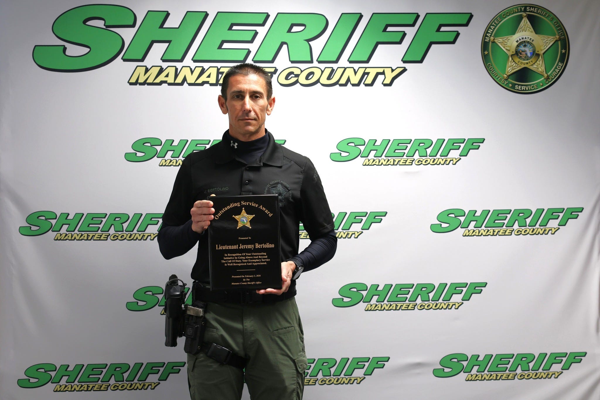 Lieutenant Jeremy Bertolino of the Manatee County Sheriff’s Office has been recognized with the agency’s Outstanding Service Award for his leadership and dedication in organizing and competing in a national police canine event hosted in Manatee County.