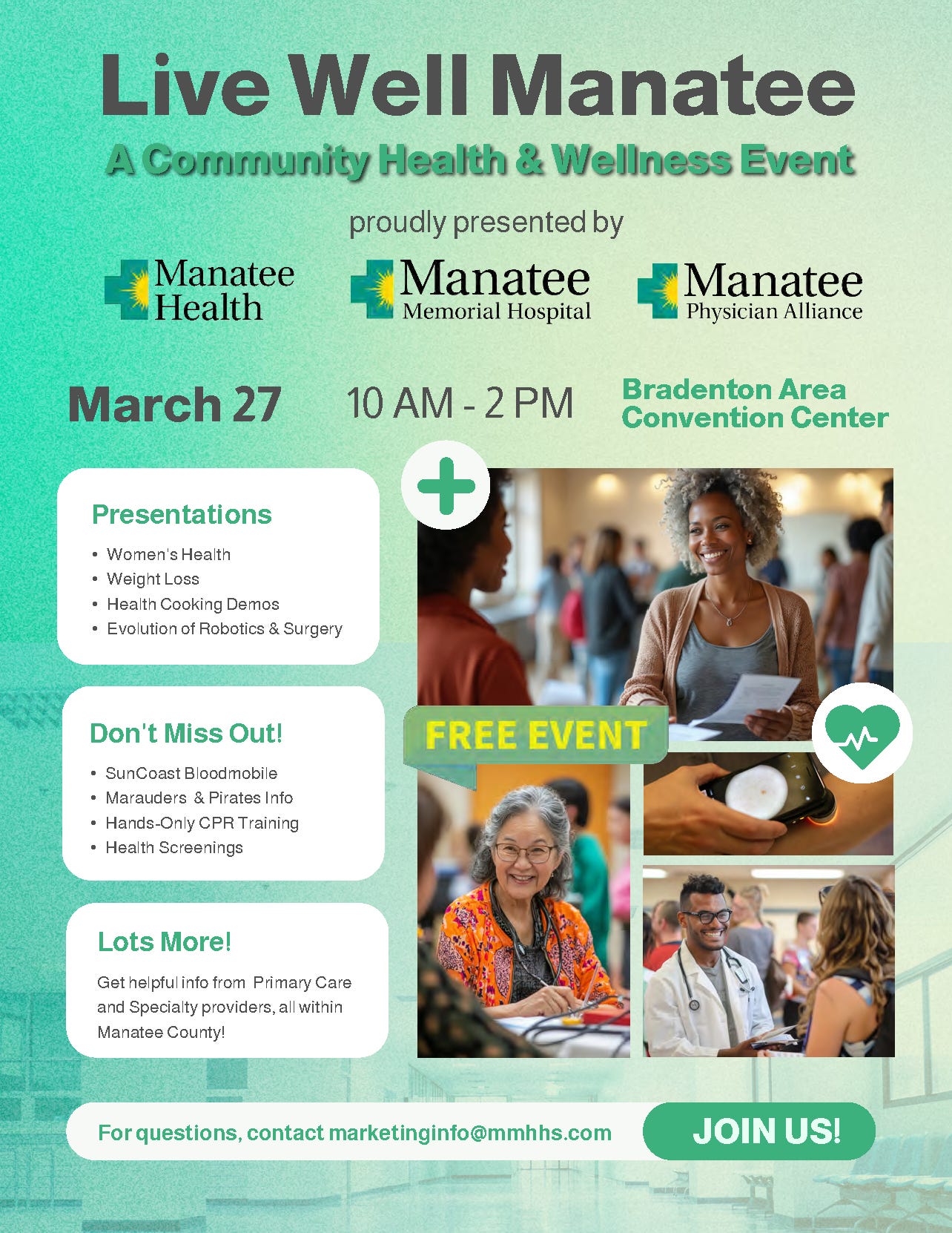 Healthcare professionals from across Manatee County will be available to provide information about primary care and specialty services, giving attendees a chance to ask questions and learn more about local care options.