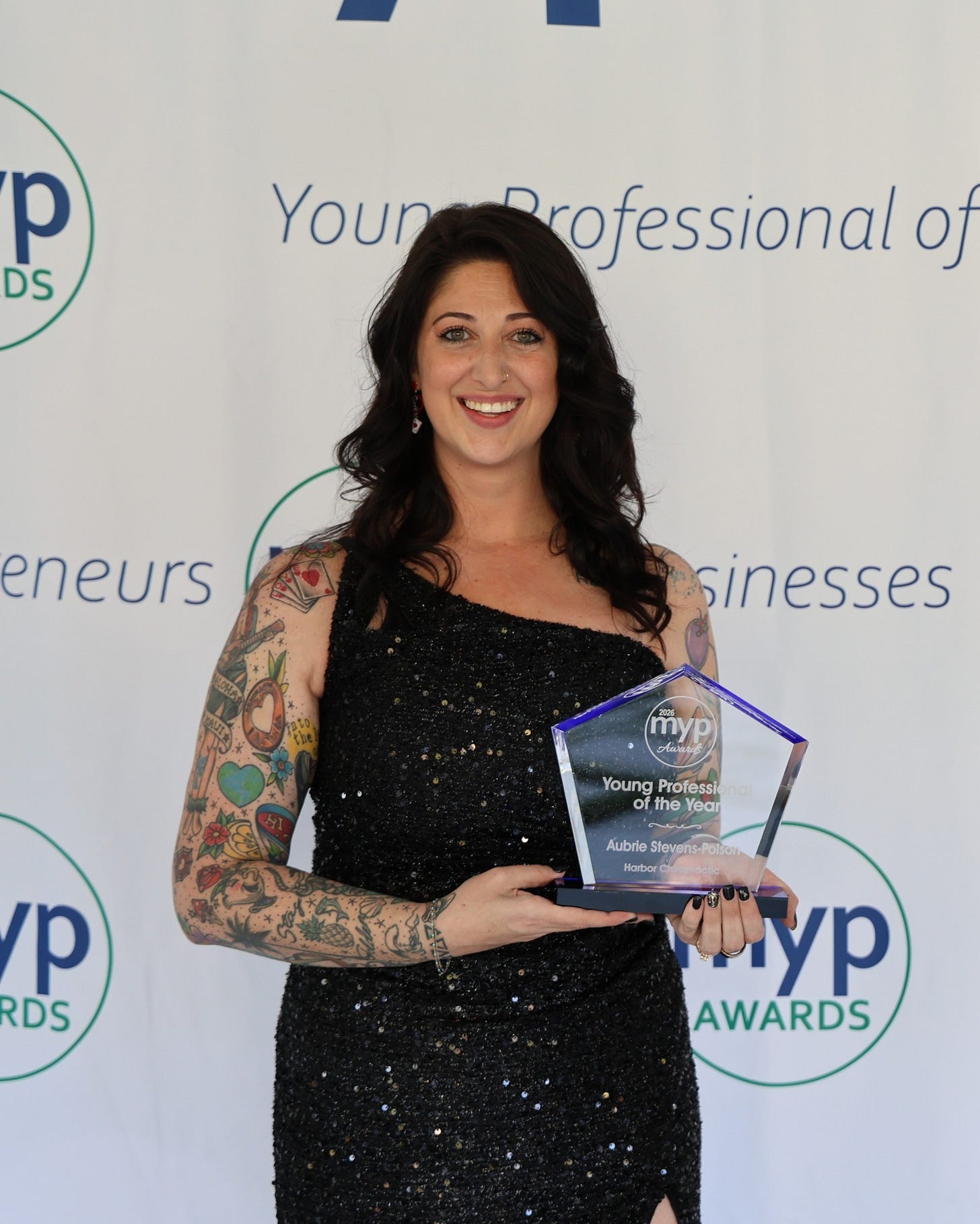 The evening’s highest honor, Young Professional of the Year, was awarded to Aubrie Polson of Harbor Chiropractic for her leadership, influence, and dedication to making a meaningful difference in the community.