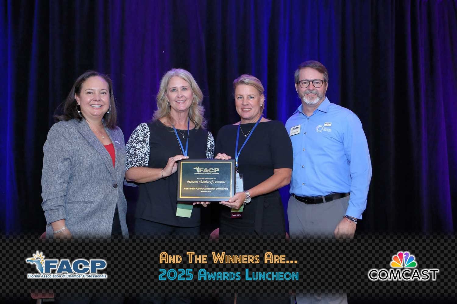 The Manatee Chamber of Commerce has been recognized among the top chambers in Florida, earning recertification as a “Certified Plus” Chamber - the highest level of certification awarded by the Florida Association of Chamber Professionals (FACP). The honor was presented at the FACP 2025 Annual Conference, held November 4-6 at the Boca Raton Marriott at the Boca Center.