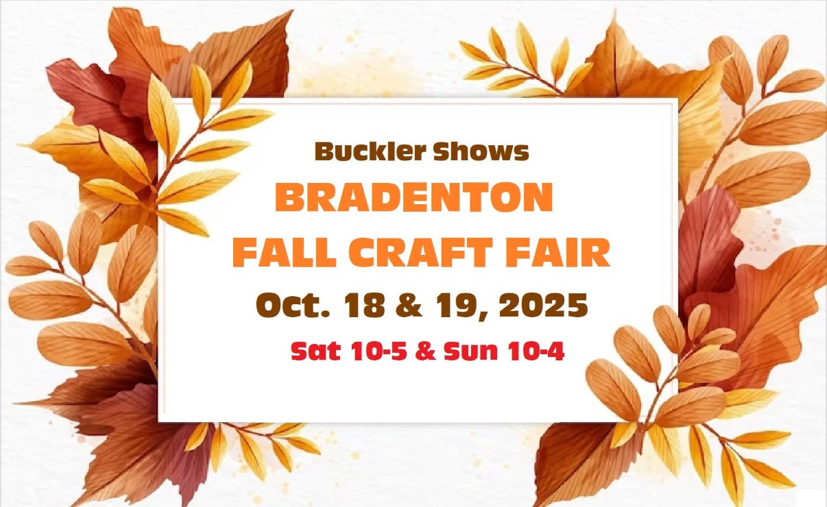 The Bradenton Fall Craft Fair brings handmade creativity to the Bradenton Area Convention Center on October 18–19 (Saturday 10 a.m.–5 p.m., Sunday 10 a.m.–4 p.m.). Hosted by Buckler Shows, the fair features Pinterest-inspired crafts, jewelry, fudge, macramé, pottery, home décor, and more than 100 artisan booths.