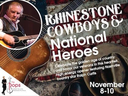 A country-music salute to America’s veterans with Nashville artist Ralph Curtis and The Pops Orchestra.