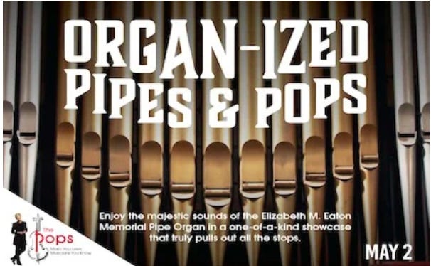 On May 1, arts patrons can attend Organ-ized: Pipes & Pops at the SCF Neel Performing Arts Center. The performance highlights the power and range of the Elizabeth M. Eaton Memorial Pipe Organ, paired with orchestral elements for a unique musical experience designed to showcase the instrument in a modern and engaging format.