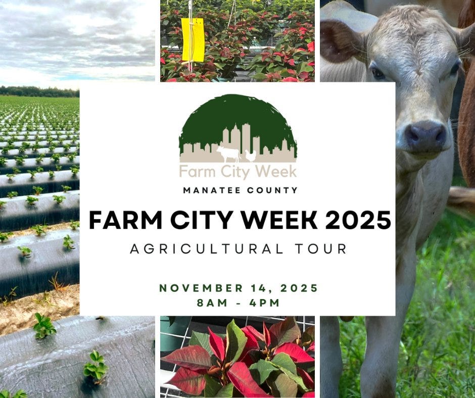 The Manatee County Farm City Week Agricultural Tour (8 a.m.–4 p.m.) celebrates the partnership between local farmers and urban residents.
