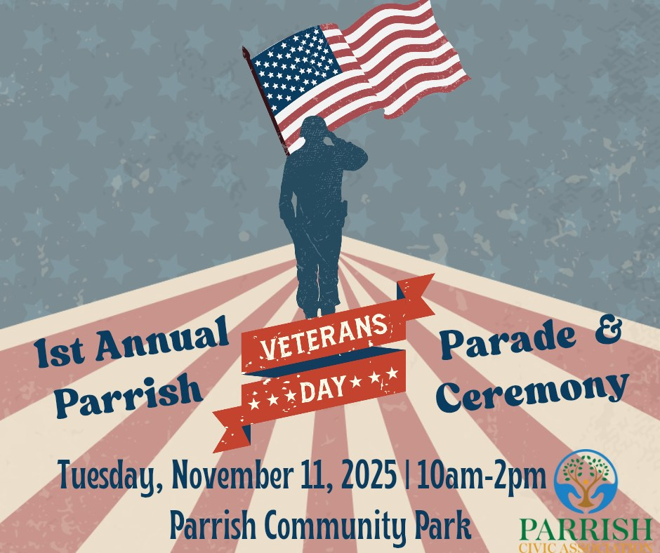 Manatee County will proudly celebrate Veterans Day with a variety of events and recognitions. The 1st Annual Parrish Veterans Day Parade and Ceremony will take place from 10 a.m. to 2 p.m. at Parrish Community Park, featuring local veterans, bands, and civic groups.