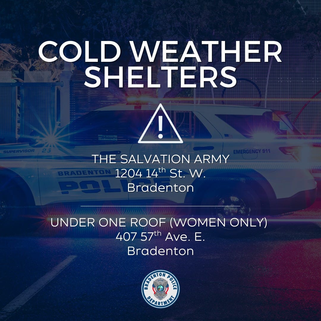 Manatee County officials announced expanded cold-weather shelter options as frigid overnight temperatures are expected tonight and Friday, urging residents to share the information with anyone who may need a safe, warm place to stay.