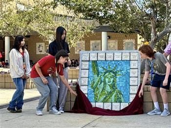 Braden River Middle School held an annual tribute ceremony that included the unveiling of a beautiful new mosaic tile project honoring veterans. The event featured performances by band, orchestra, and chorus student musicians, filling the air with patriotic songs. Braden River High School JROTC and Southeast High School Television students also contributed respect and admiration to the proceedings. Special guest speaker, veteran, and former School Board Member Frank Brunner shared insights that resonated with the audience of students, veterans, and community members.