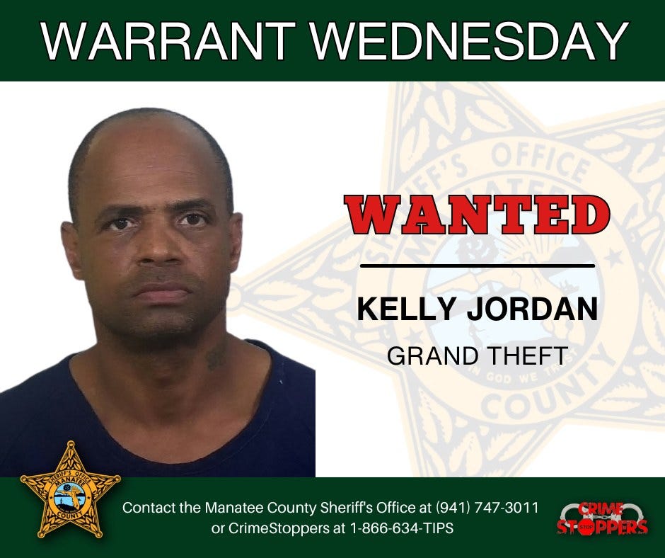 The Manatee County Sheriff’s Office is asking for the public’s assistance in locating Kelly Jordan, who is wanted on charges of grand theft.