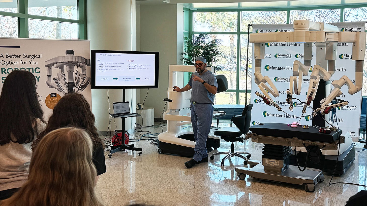 The hospital welcomed students from Lincoln Memorial Middle School, Palmetto High School, Parrish Community High School and Manatee High School, many of whom are enrolled in health science and medical pathway programs. Local surgeons and medical professionals guided students through demonstrations and hands-on activities that replicated the precision and coordination required for robotic-assisted surgery.