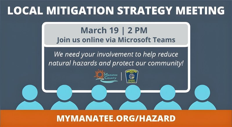Additional information about the Local Mitigation Strategy, including the meeting agenda and background materials, is available at mymanatee.org/hazard.