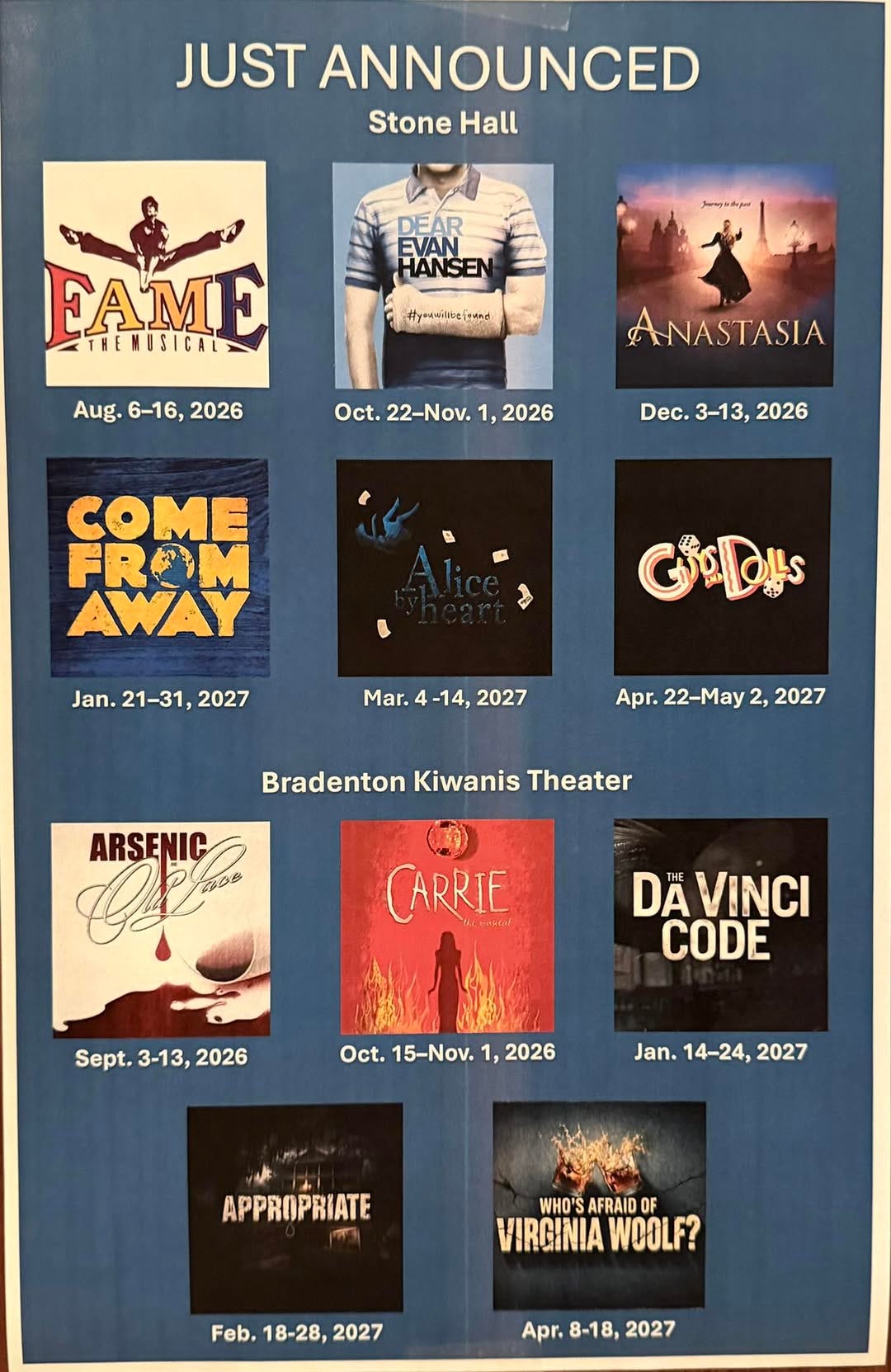With its blend of large-scale productions and intimate theatrical experiences, the Manatee Performing Arts Center’s 2026–2027 season reflects a commitment to storytelling that entertains, challenges, and connects the community. From uplifting true stories to intense emotional dramas, the upcoming season promises a wide-ranging theatrical journey for audiences across Manatee County.