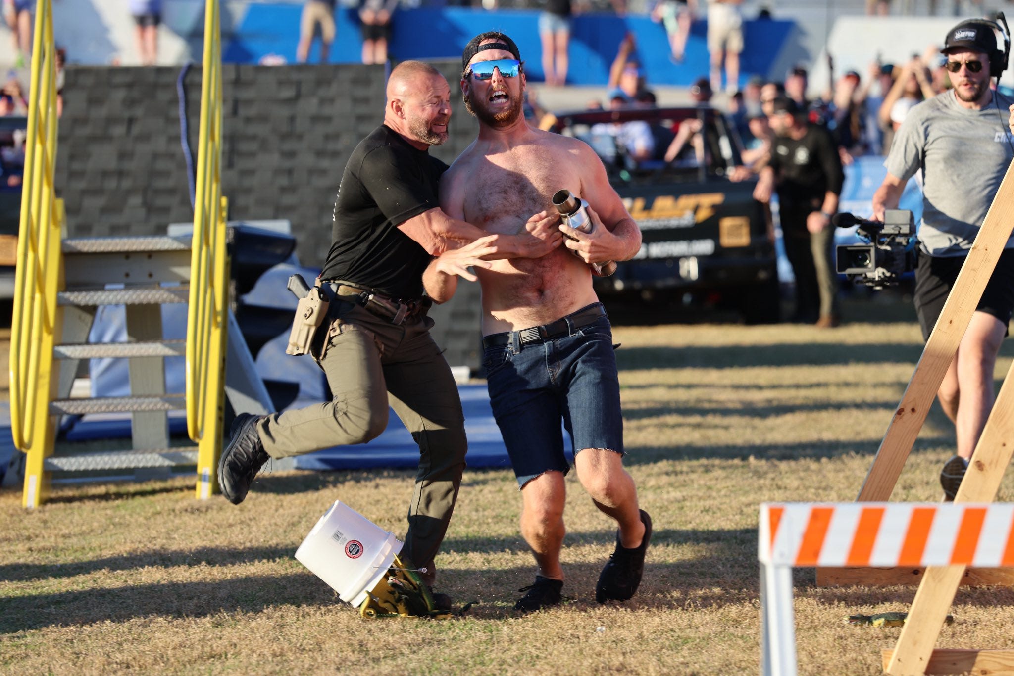 The event, known for its tongue-in-cheek competitions inspired by outlandish Florida headlines, drew crowds eager to watch contestants test their speed, strength and sense of humor. One of the most talked-about challenges was the Evading Arrest Obstacle Course, where participants had to swipe a mock catalytic converter and sprint through barriers before a deputy could track them down.