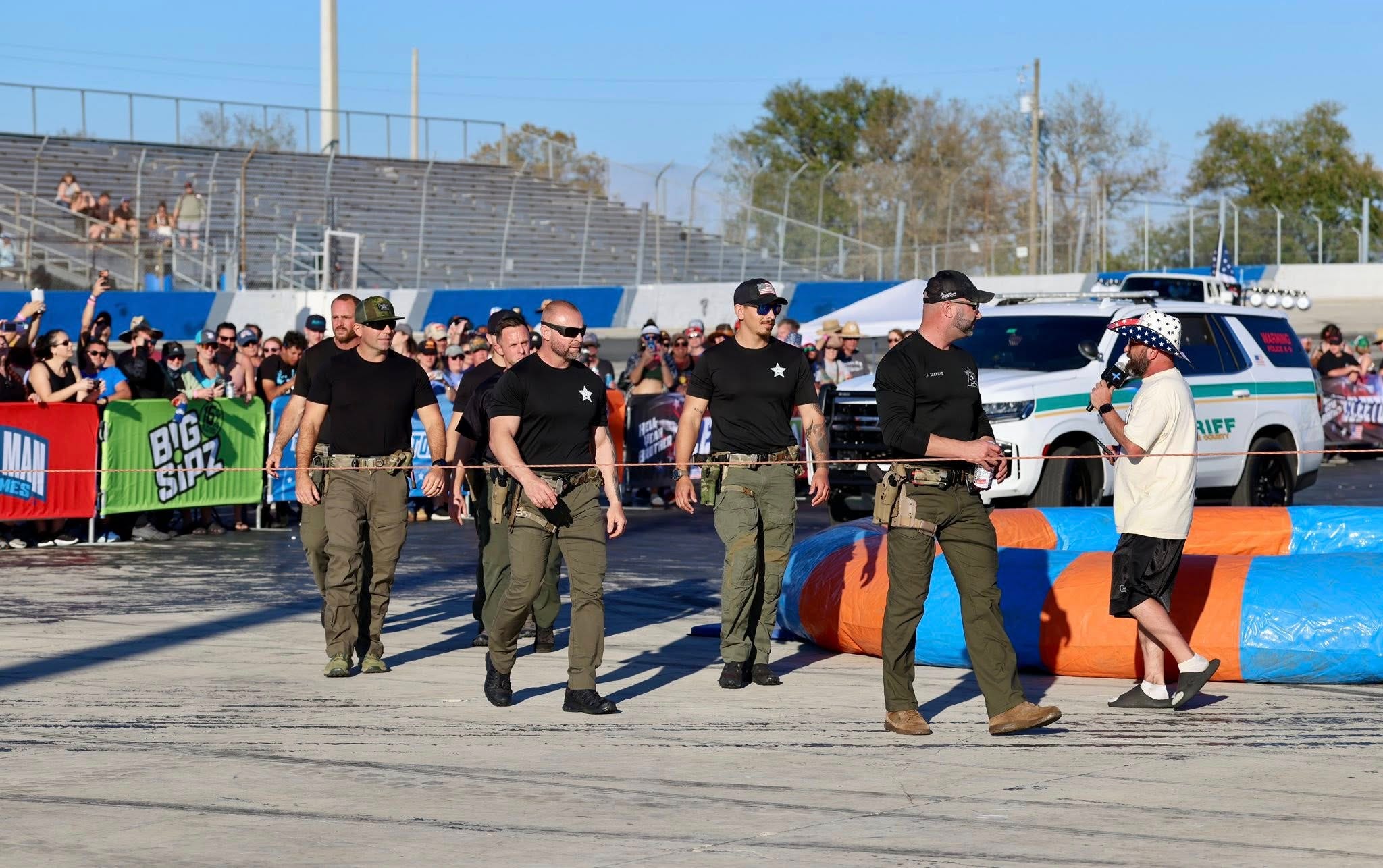 Members of the Manatee County Sheriff’s Office SWAT team traded emergency lights for laughter this weekend as they took part in the Florida Man Games at the Freedom Factory.