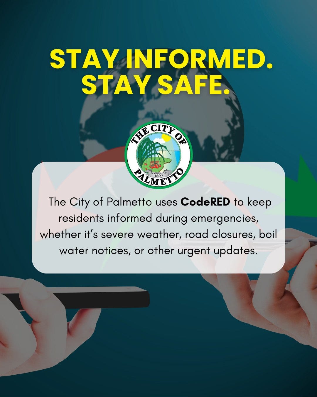 The City of Palmetto is urging residents to take advantage of CodeRED, a free emergency notification system designed to provide timely alerts during critical situations. CodeRED delivers messages directly to residents through phone calls, text messages, or emails, ensuring quick access to important information.