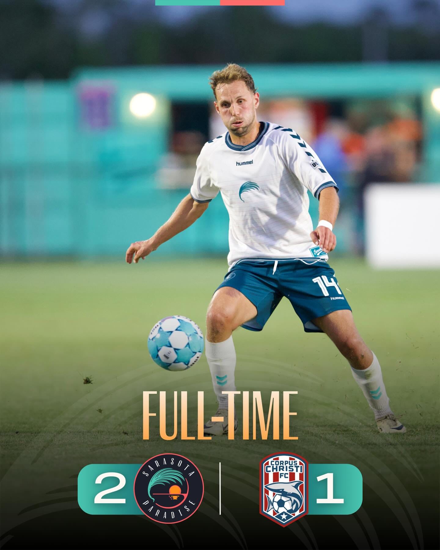 Coming into a midweek clash with Corpus Christi FC, the Sarasota Paradise were in serious need of a rebound. Three straight losses, including two shutouts, had left the Paradise down in 15th place as they continued to search for a cohesive team identity. Wednesday’s game provided a step in the right direction, as goals from Anderson Rosa and Sander Røed helped power the Paradise to a 2-1 win over the Sharks.