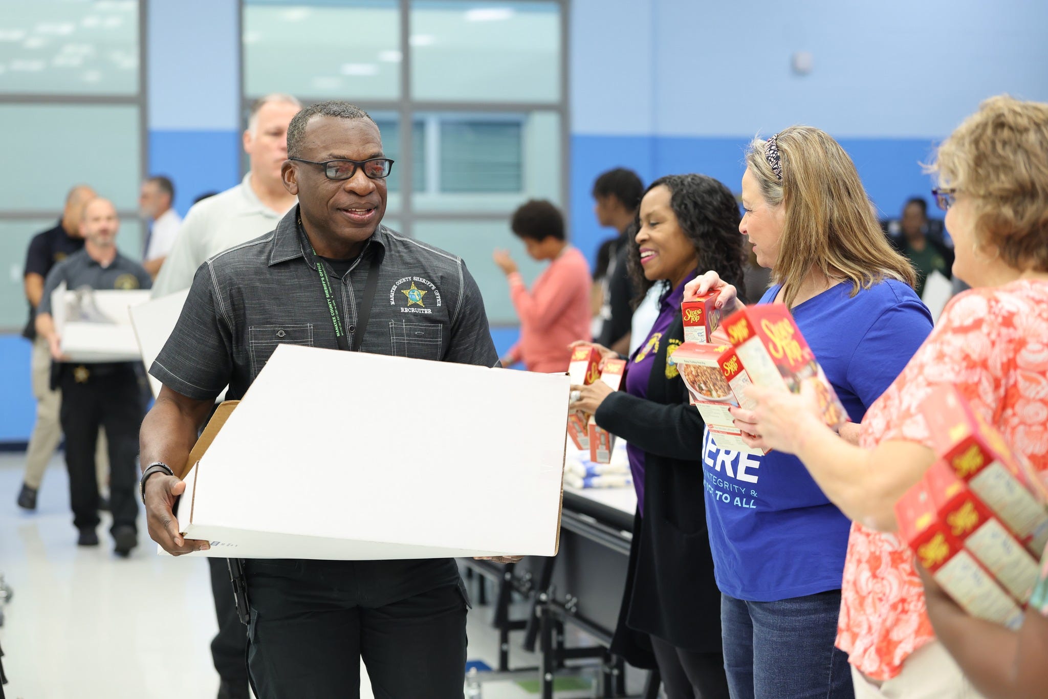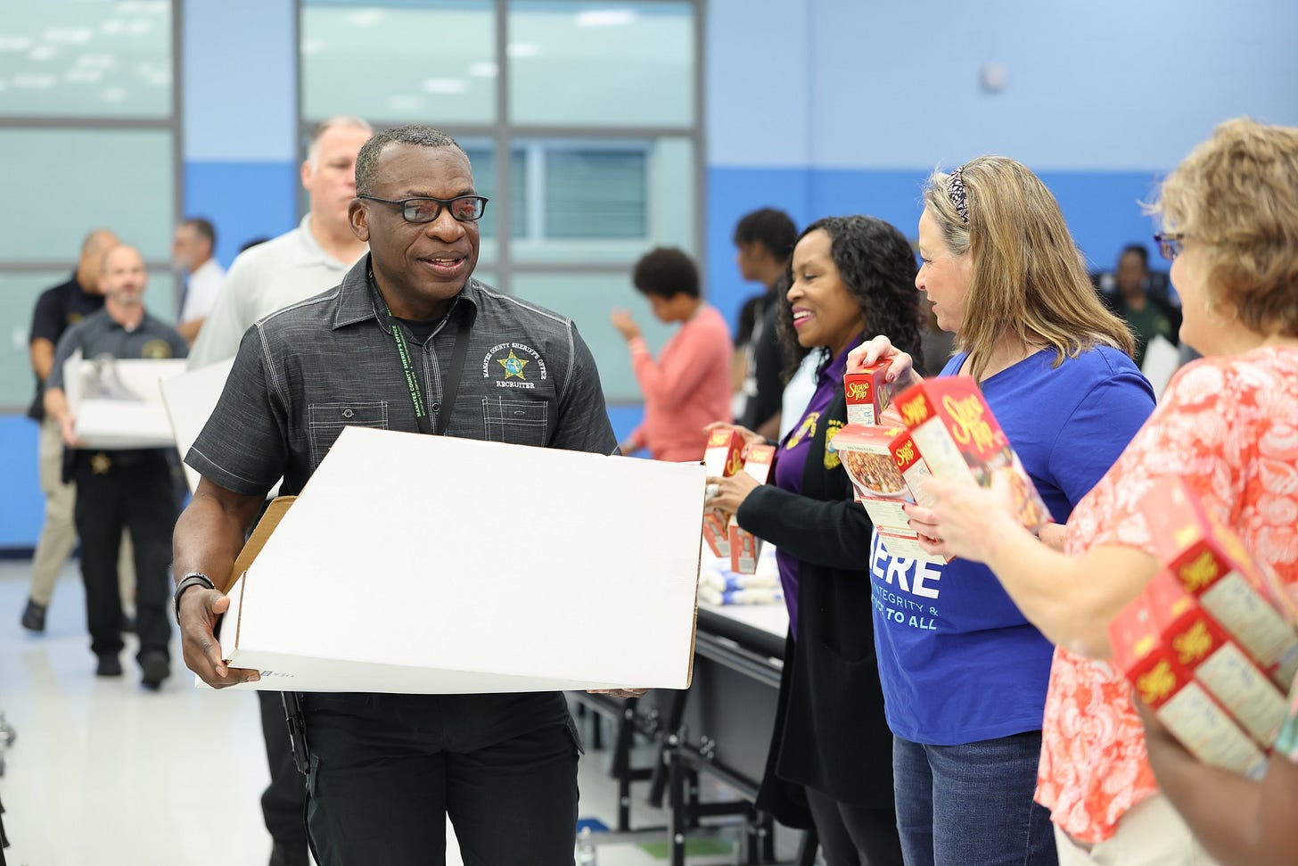 Ray Bellamy and Sheriff Wells Unite Volunteers to Pack 350 Thanksgiving Meals for Manatee Families